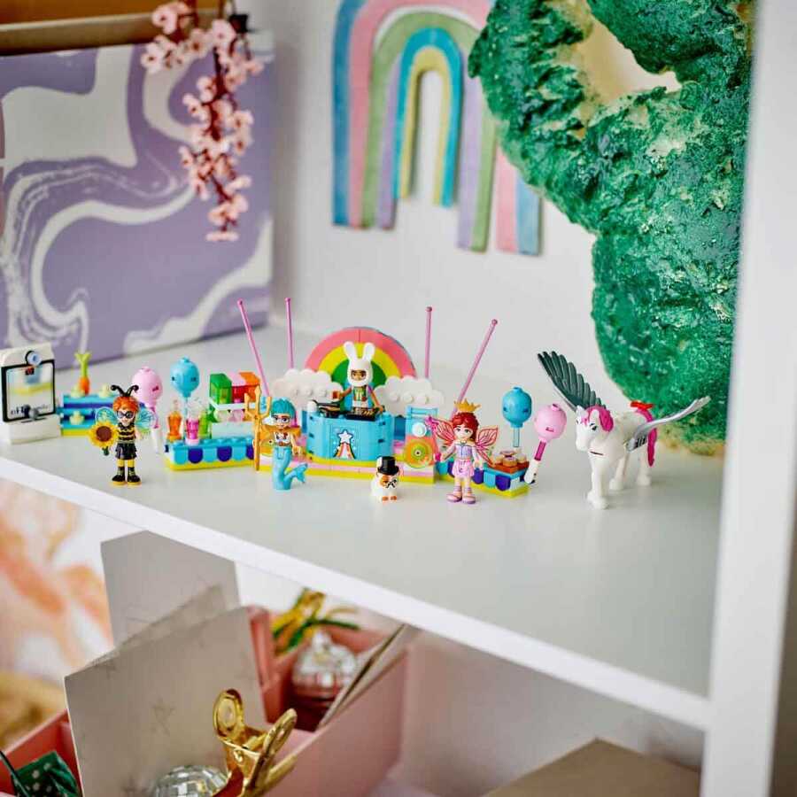• 4 mini-dolls and 2 LEGO animal figures: Get the party started with Autumn, Olly, Leo, Paisley and their pets dressed as a bumblebee, merman, wizard, bunny, fairy and unicorn.