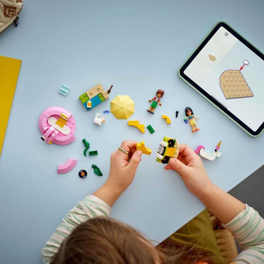 This set for girls and boys aged 5 and up includes 2 buildable pool inflatable toys, pool accessories, 2 LEGO Friends mini-dolls and a cat figure.