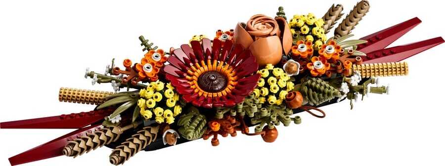 ;Nurture creativity – Build and display a LEGO® Icons Dried Flower Arrangement (10314) with this relaxing building project for adults;Inspired by autumn – This flower gift building set is filled with vibrantly colored flowers inspired by the colors of autumn, with a gerbera and rose as the focal point;Build together – The model's split-apart design lets two people build together, providing a chance to relax and get creative with loved ones;Let your decor bloom – Once completed, your model can be placed on your desk, hung on a wall or combined with one or more from the same set to create a large floral arrangement;A gift for flower lovers – Florists and flower lovers can create a LEGO® Icons Dried Flower Arrangement; Dimensions – This product measures over 2” (7cm) high, 15” (40cm) wide and 5” (13cm) deep;Plants made from plants – Part of the LEGO® Botanical Collection, this set includes pieces made from plant-based plastic produced from sustainable sugarcane;See the bigger picture – The LEGO® Builder app offers ways to save your building instructions and keep track of your models, plus tools to zoom and rotate models in 3D;A quality project – LEGO® bricks and pieces meet strict industry standards and have been consistent, compatible and easy to connect for over 60 years;