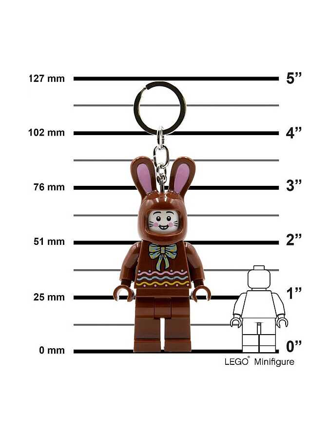 İkonik LEGO Tasarımı: Bu 76 mm yüksekliğindeki anahtar lambası, sevilen LEGO Çikolata Tavşanı minifigürünün %175 ölçekli detaylı bir kopyasıdır.