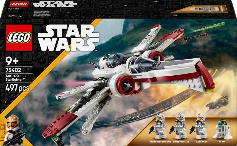 Recreate Star Wars: Revenge of the Sith missions with the LEGO ARC-170 Starfighter building toy (75402) for kids.
