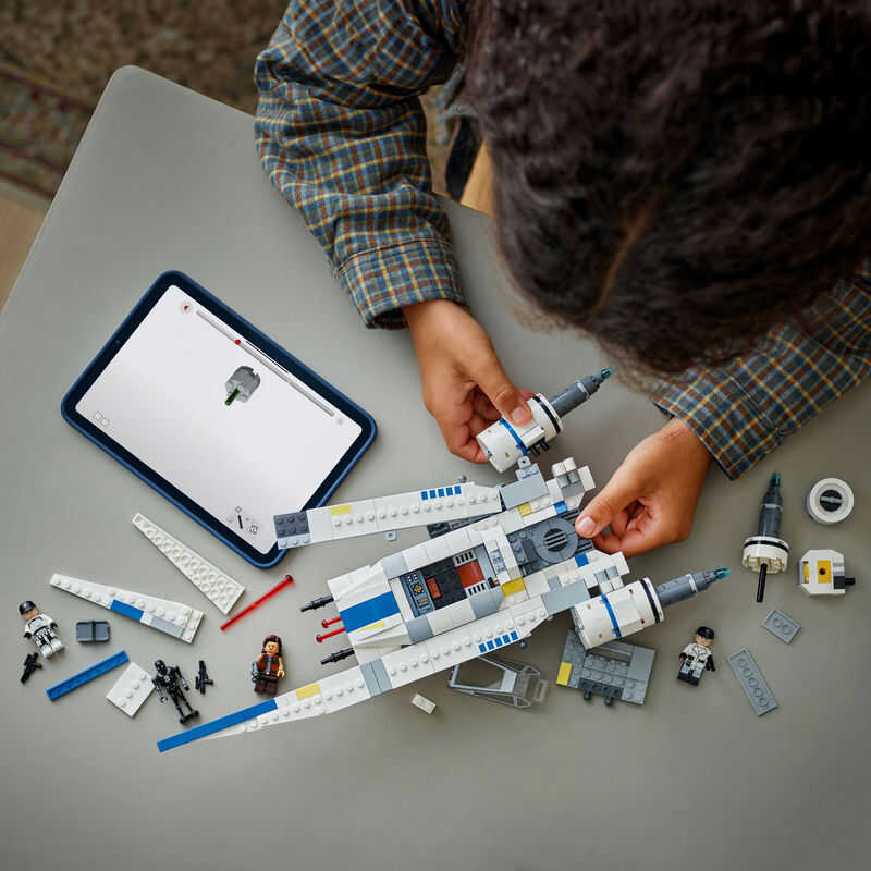 Make this creative experience extra fun for kids with the LEGO Builder app, where they can zoom and rotate the 3D digital version of the Star Wars starfighter as they build.