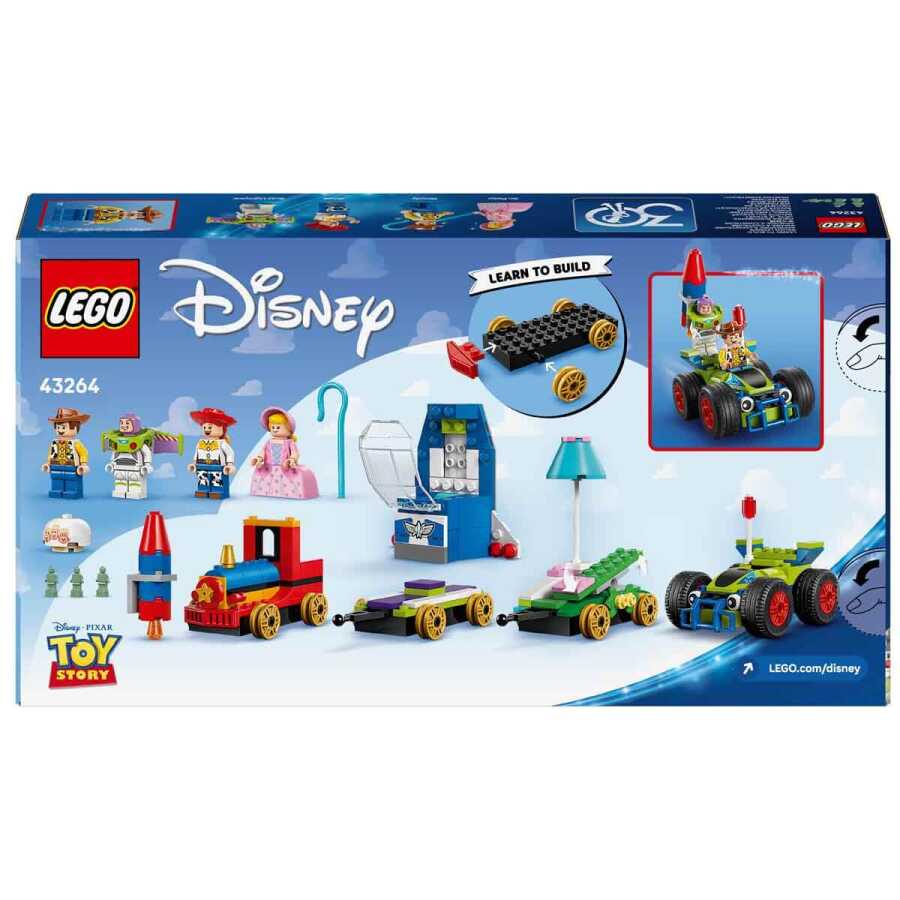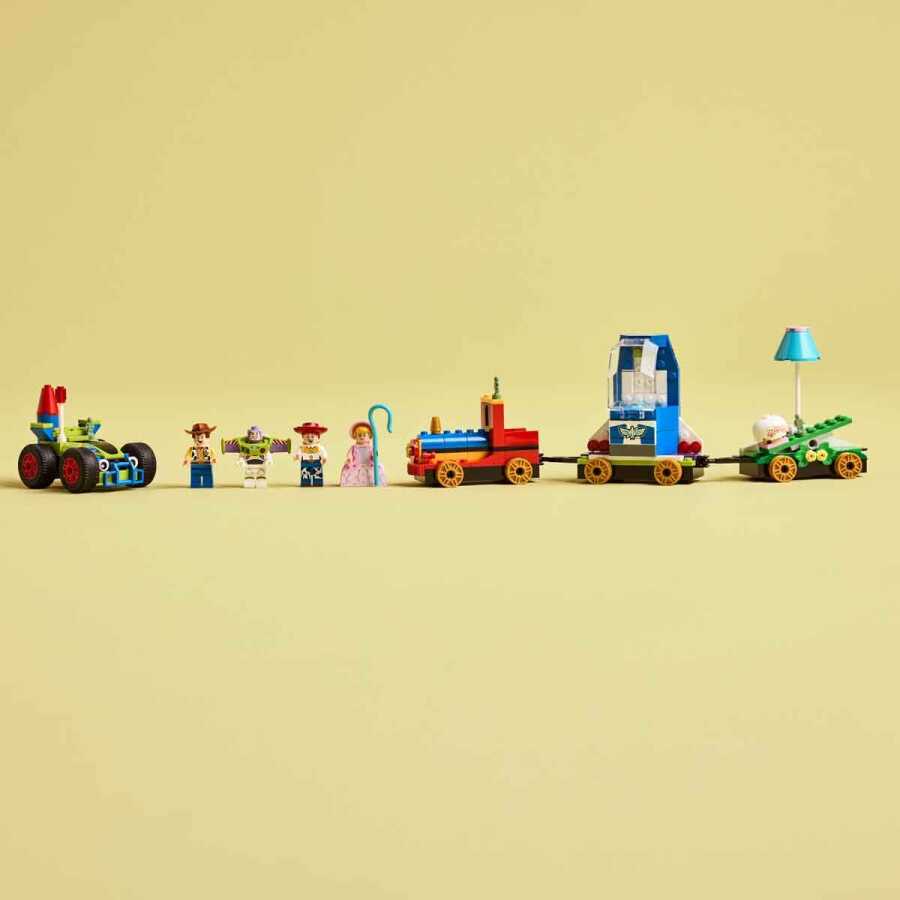 • What's inside? The buildable LEGO Disney toy set features a train engine, 2 parade floats and a car, plus 4 LEGO Disney minifigure characters: Woody, Jessie, Bo Peep and Buzz Lightyear.
