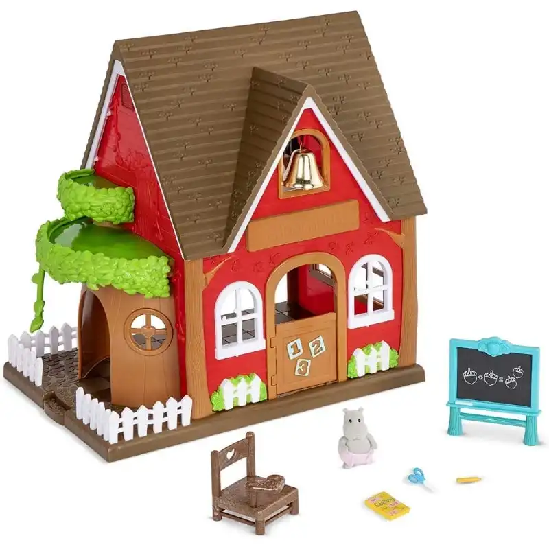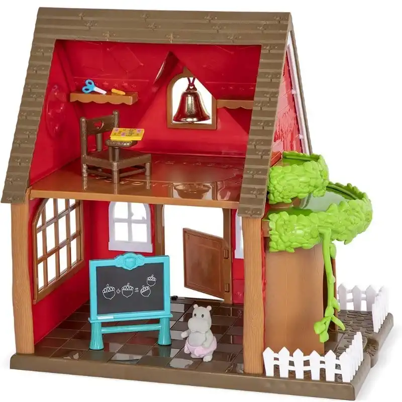 A new two-story school has just appeared in town. It has everything you need for classrooms. It even has a school bell!