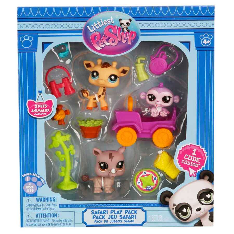 In the box; Includes 3 pets, 10 accessories, collector's card, virtual code, and collector's guide.