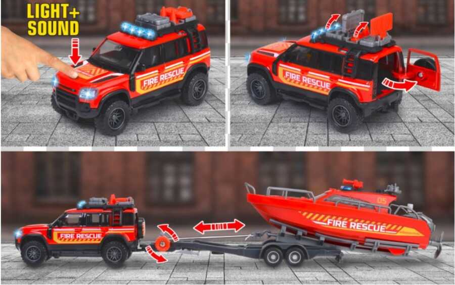 Majorette Land Rover Fire Rescue + Boat 213716001038