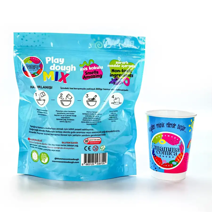 " Simply add oil and water, and you'll have a soft, long-lasting, and healthy playdough in just a few minutes! Easy to make and fun for your kids, Mammacomica's powder mix comes in eco-friendly packaging.