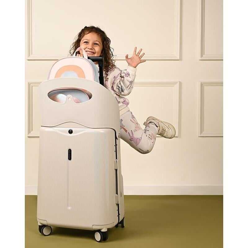 Built-in seat back ideal for multiple uses: child riding, portable seat for adults, bag storage.