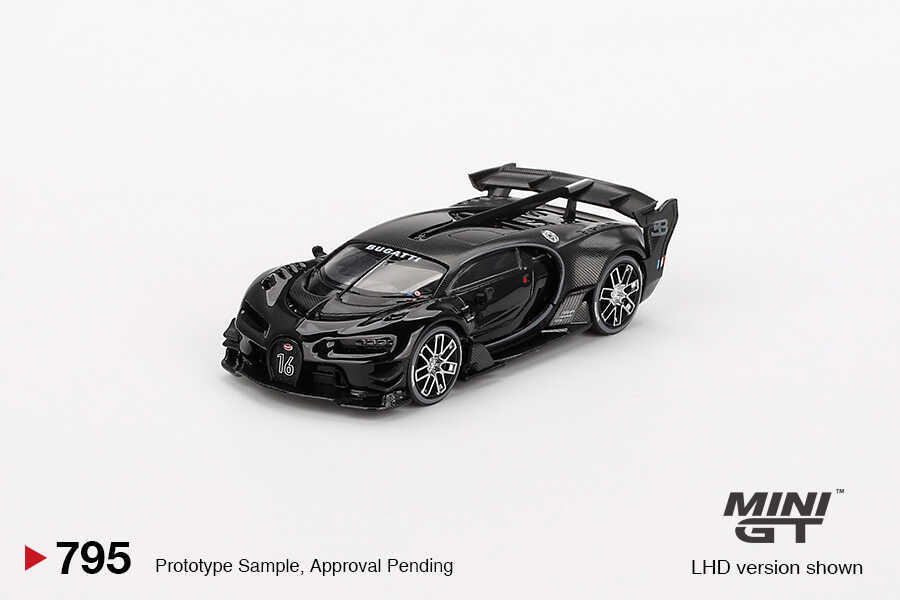 1/64 scale licensed die-cast model Limited edition with matte black (Black) color details Realistic rim and rubber tire design Highly detailed interior, fixed parts Special blister pack or box contents Compatible with all Mini GT track/diorama systems The Bugatti Vision GT is a hypercar concept specially designed for the Gran Turismo game series.