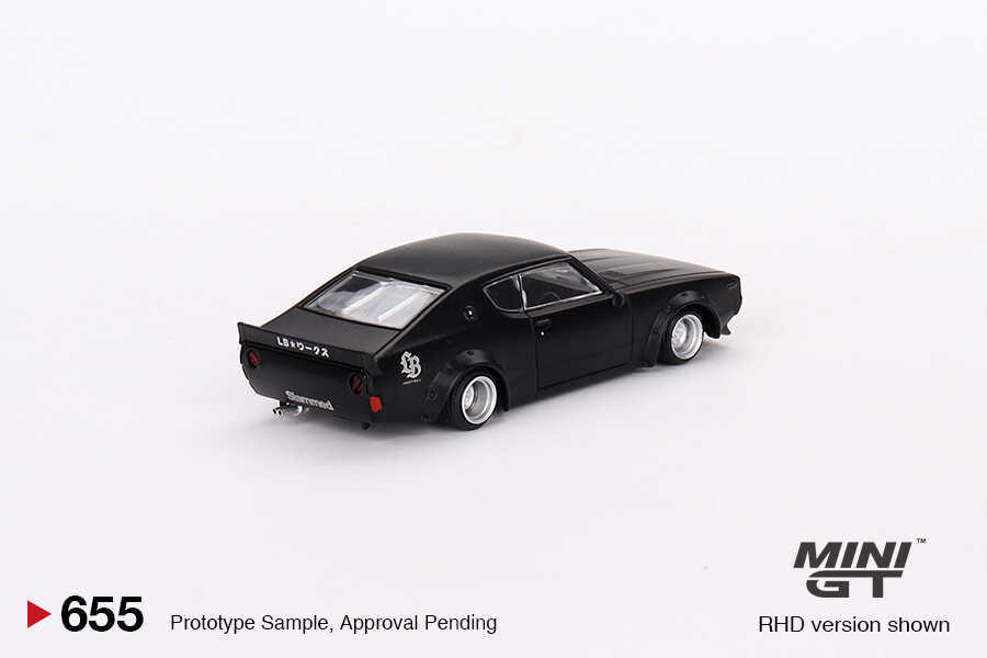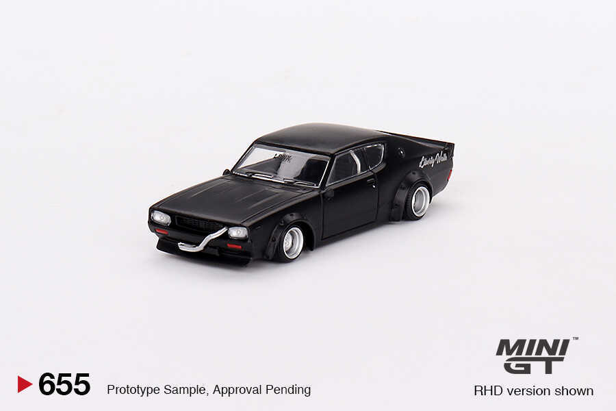 The Mini GT 1/64 Nissan Skyline Kenmeri Liberty Walk MGT00655-R is a detailed diecast collectible model featuring the iconic Liberty Walk modification of the legendary Japanese Nissan Skyline Kenmeri sports car.