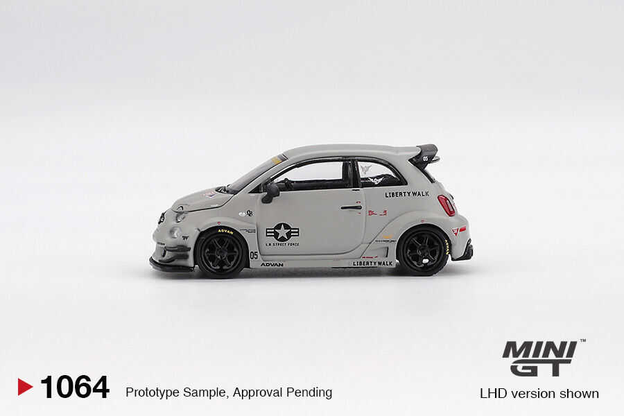 Mini GT 1:64 Abarth 595 LB-WORKS x Abas Works Fighters MGT01064 is a licensed die-cast model car specially designed for performance and modified car enthusiasts. This Abarth 595 version with a Fighters theme, prepared in collaboration with Liberty Walk (LB-WORKS) and Abas Works, stands out with aggressive body details and race character.