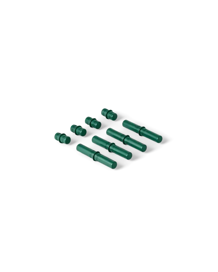 Add new colors to your structures and expand your creativity even further with this 8-piece peg set.The Modu 8X green connecting piece set is a practical and functional connecting solution that perfectly fits all MODU designs with its durable peg structure that securely connects MODU blocks.