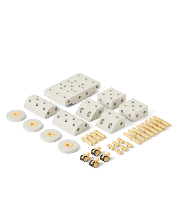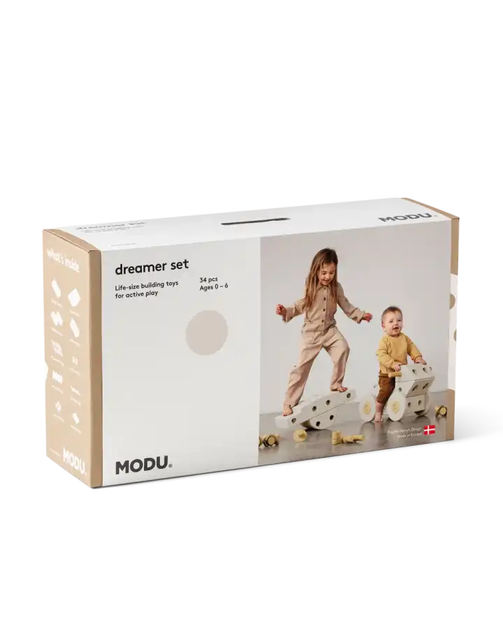 Let your wildest designs come to life. With MODU's flagship Dreamer Set, you can create over 25 life-sized toys and structures. Plus, you can drive, swing, roll, jump, climb, or practice balancing these structures.