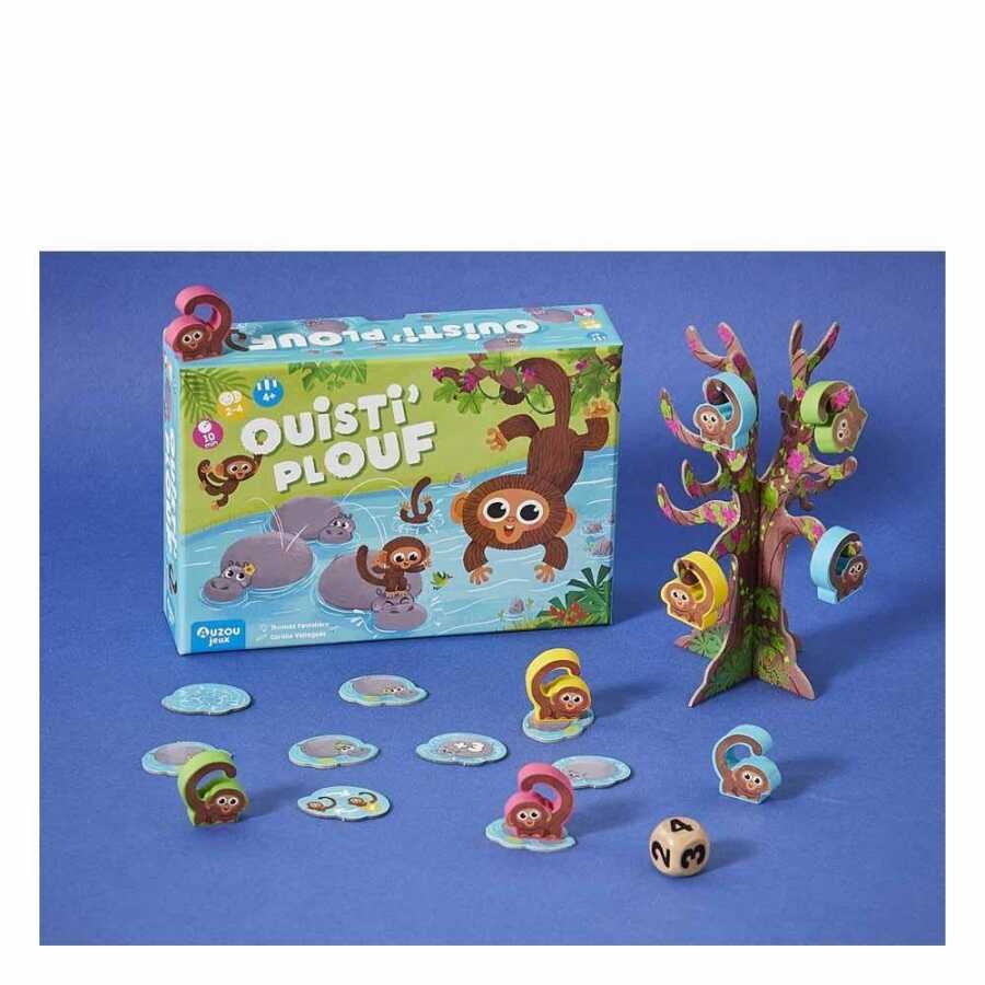Be the first to get your three Ouisti pawns across the river! Flip the correct Hippo tiles to get all your Ouisti across the river, but be careful! Don't let them fall into the water! A game of memory and tactics! Contents: 39 Hippo tiles / 1 starting bank / 12 wooden Ouisti pawns / 1 3D tree / 1 wooden dice Language: FRENCH
