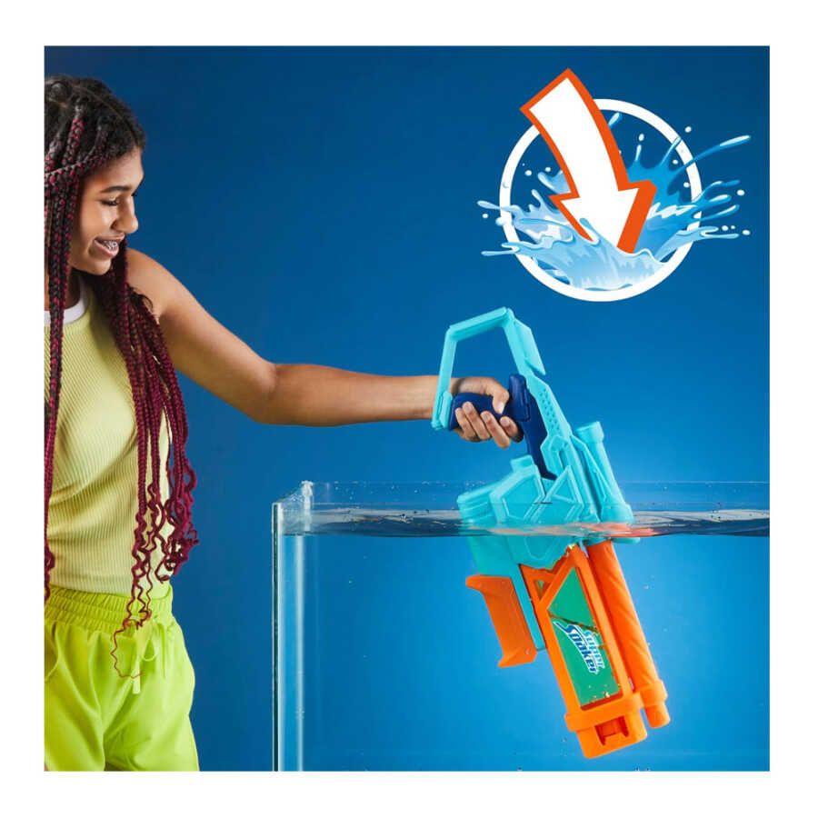 The Nerf Super Soaker Mega Dunk Refill G0999 is the perfect water gun to cool off on hot summer days! With its large water capacity and powerful projectile power, it offers a fun water battle experience.