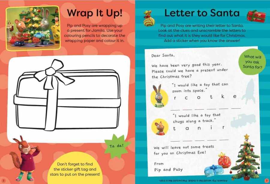 A brilliantly festive sticker activity book in the Pip and Posy series! Based on the animation by the award-winning production company Magic Light Pictures, this book is packed with puzzles, festive colouring, and stickers galore that will entice all children to join in the Christmas celebrations along with Pip and Posy.