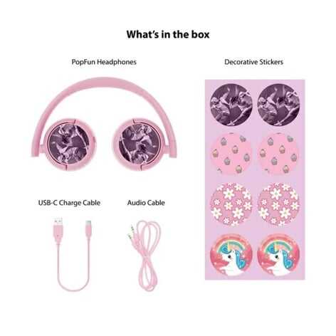 Hearing protection24-hour battery lifeVolume controlWashable ear cushionsWireless or wired connectionDurable Headphones BuddyPhones Pop headphones are extremely durable, which contributes to a better world.