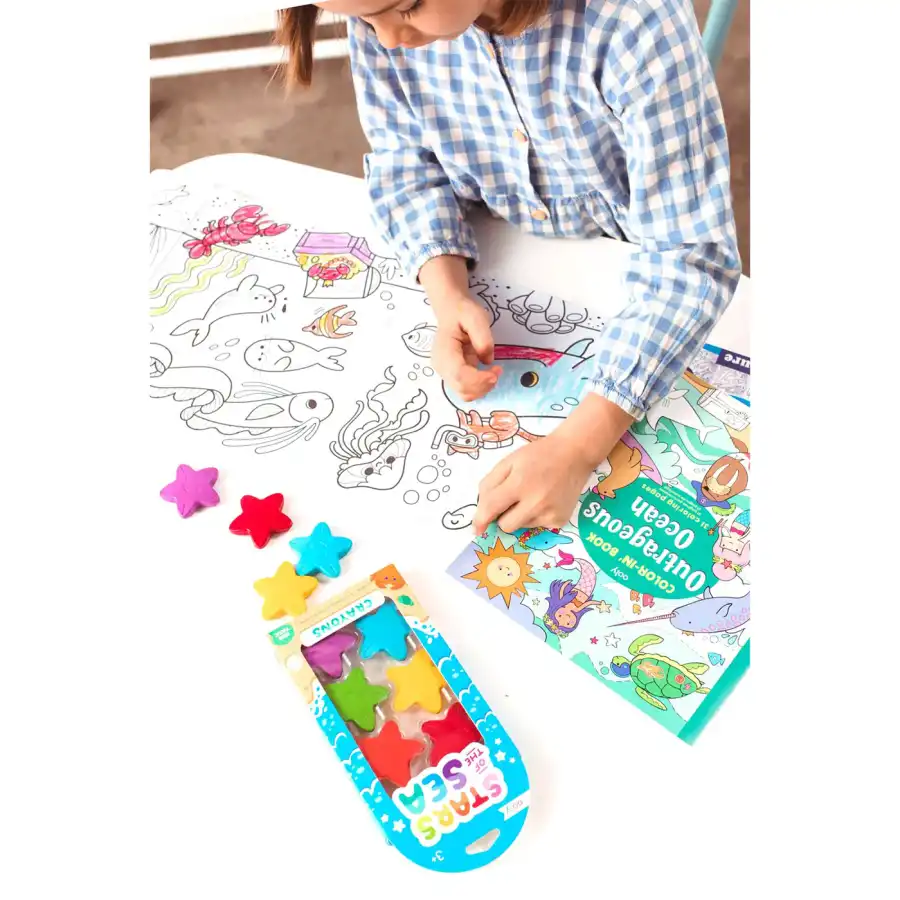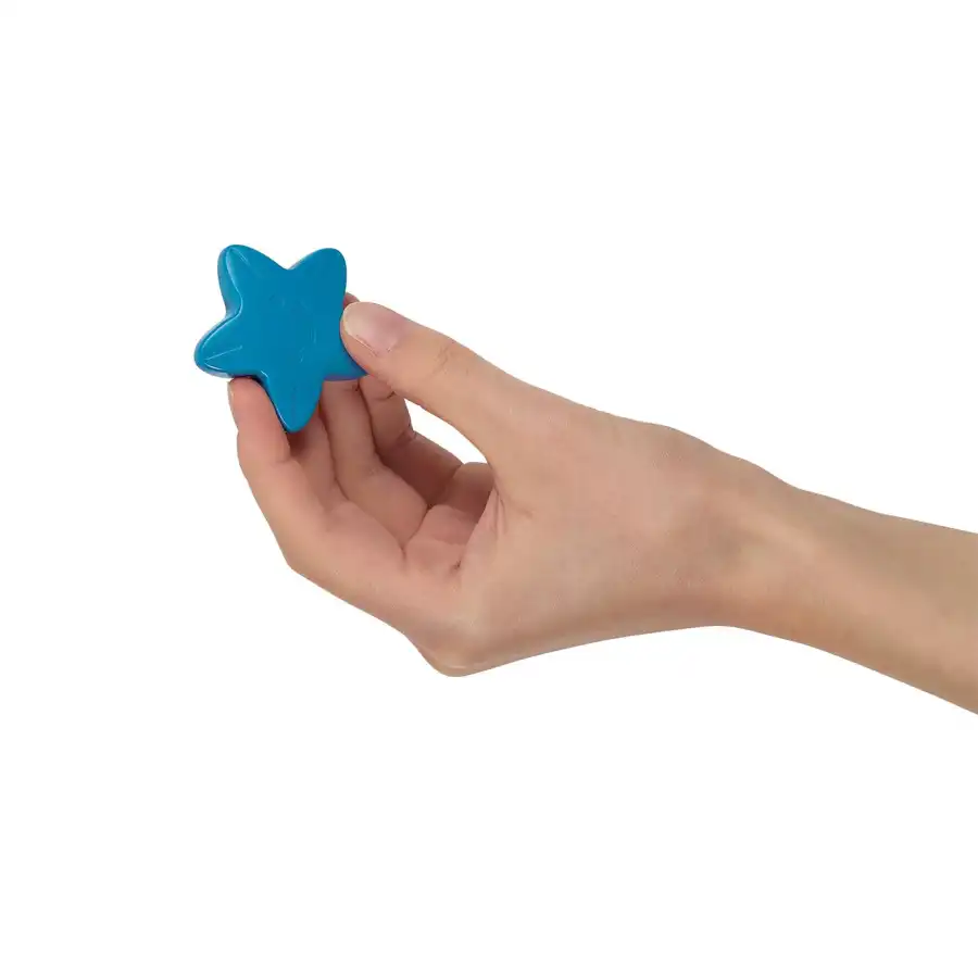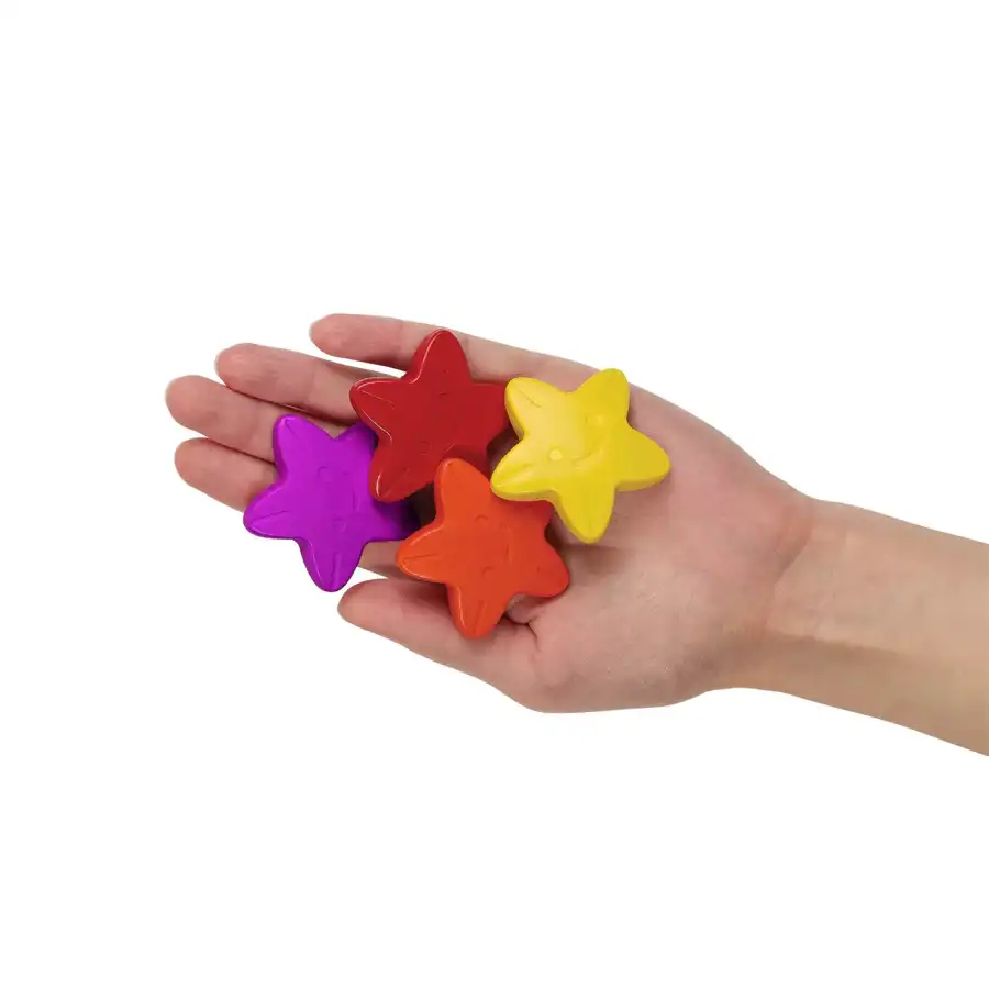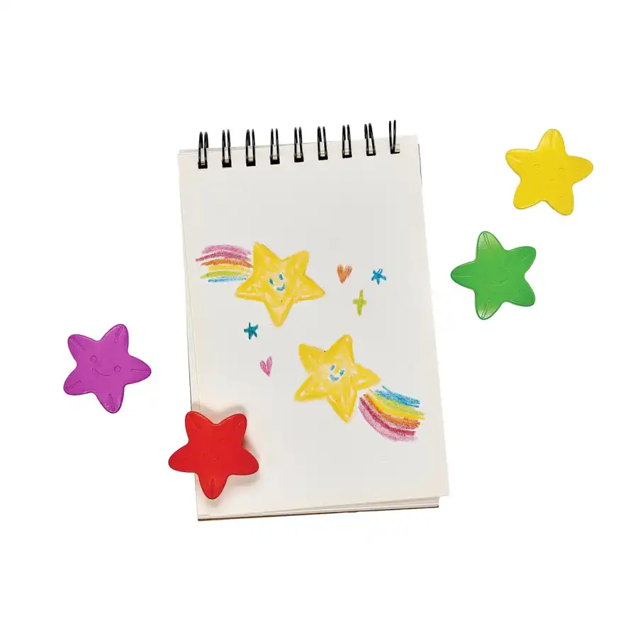 This star-shaped crayon set features bright colors like red, orange, blue, green, purple, and yellow, and a design that's easy for children to grip.