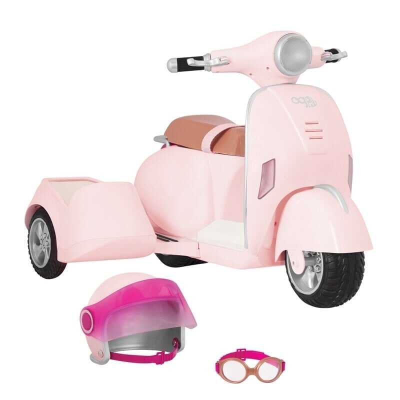 The Our Generation Scooter with Basket is a fun toy set that lets children have a fun riding experience with their dolls.