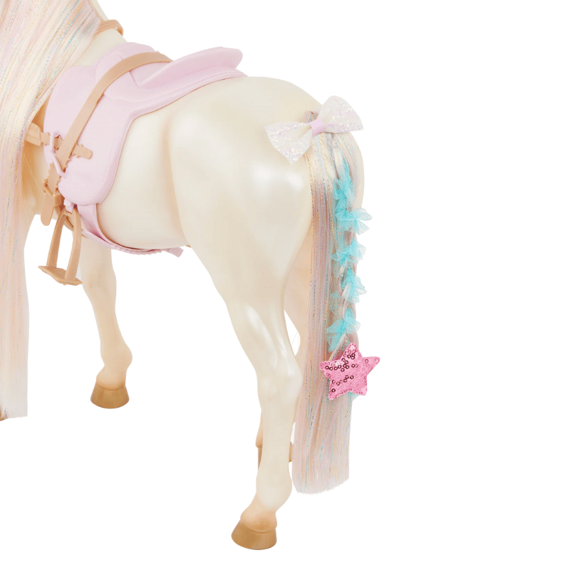 The Magical Horse's extra-long mane and tail are filled with adorable rainbow decorations that will sparkle on every adventure! Product Dimensions: 50 cm Accessory set for Our Generation 46 cm dolls.