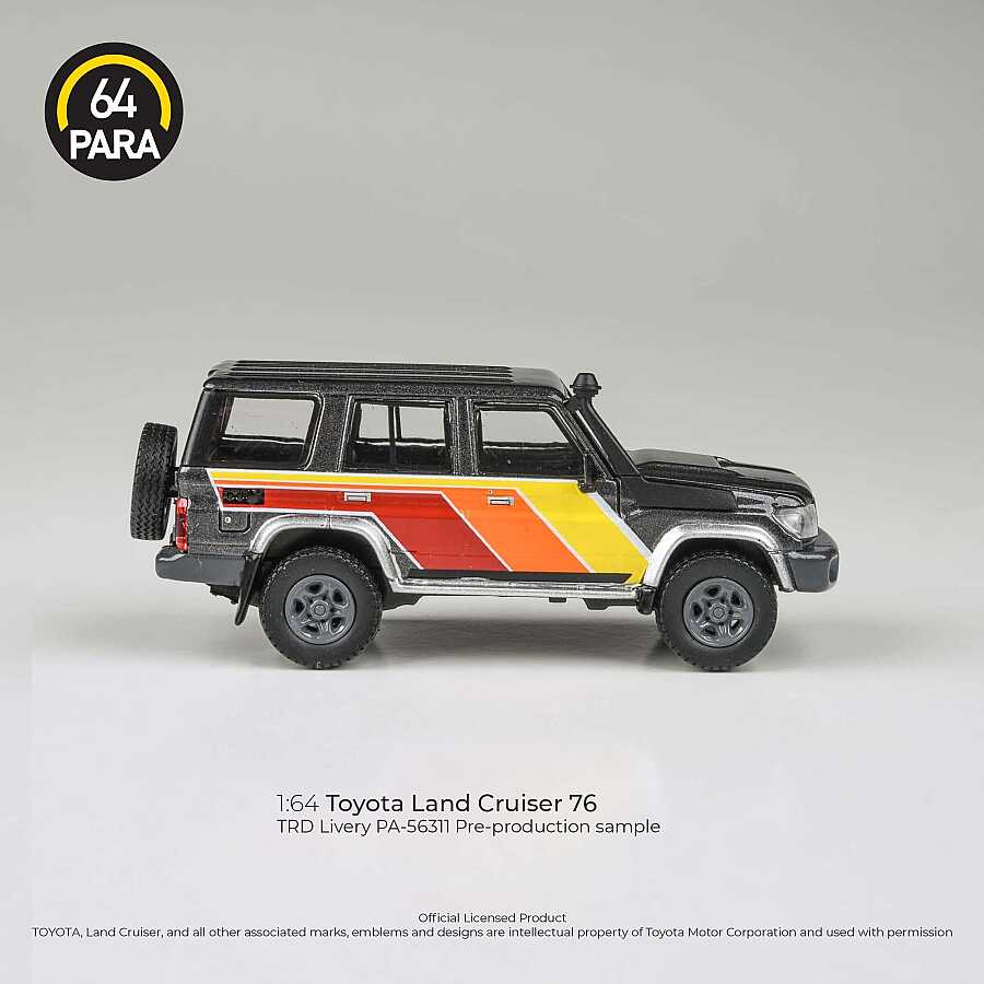 Meticulously crafted by Para64, this 1/64 scale model presents the 2014 Toyota Land Cruiser, one of the most rugged off-road vehicles in the automotive world, with a special TRD (Toyota Racing Development) design. Both an off-road icon and a collector's item, this model stands out with its fine craftsmanship and original licensed details.