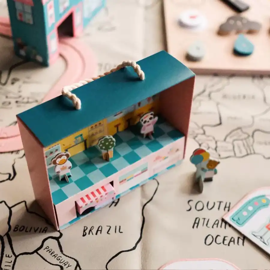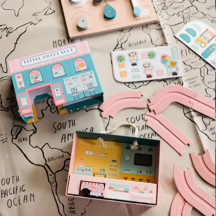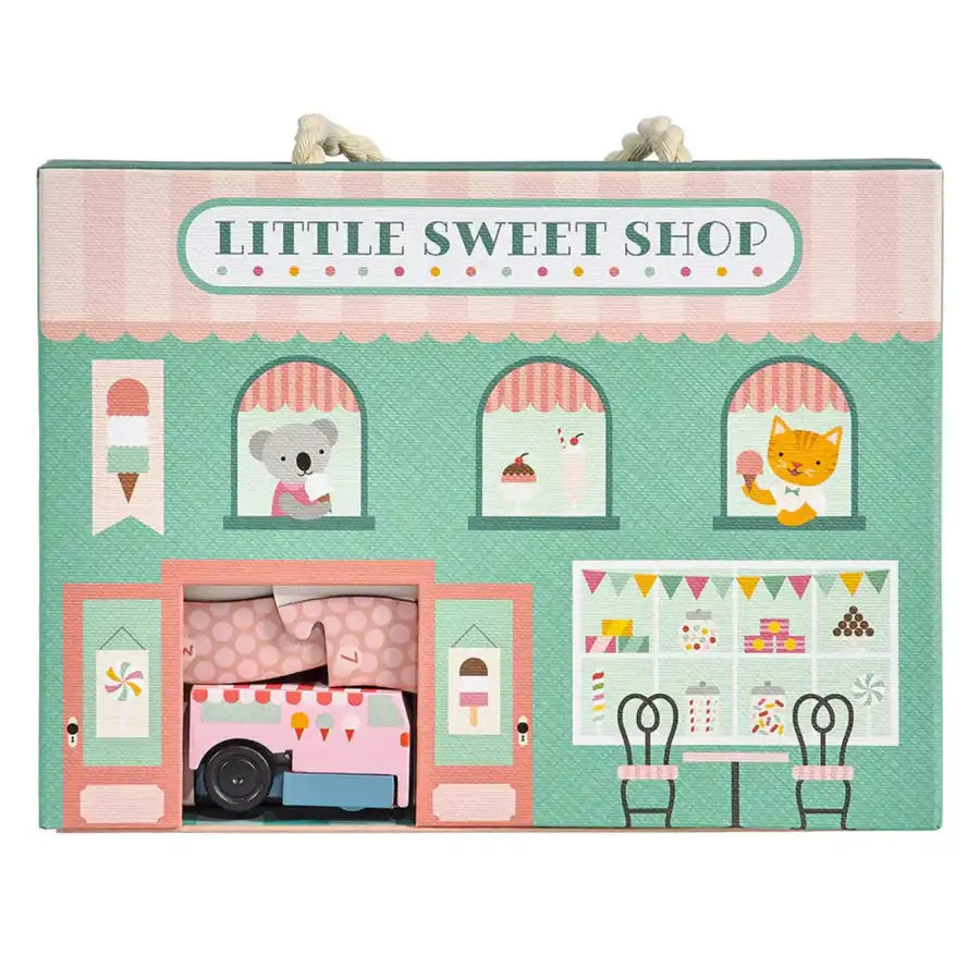 Time for treats! Start the ice cream truck and watch it speed around the sweet shop! Perfect for hours of creative play, the set is also easy to carry with its cotton cord handle.
