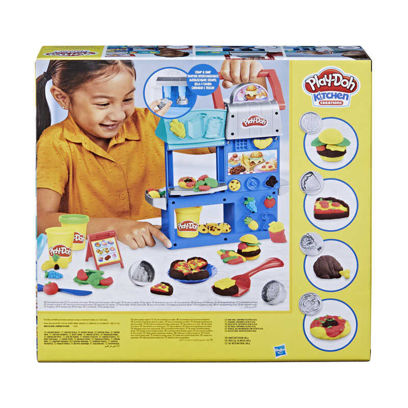 Then assemble the menu to complete the restaurant play! 5 COLORS OF PLAY-DOH: Includes a 2-ounce canister of Play-Doh in red, green, brown, yellow, and blue.