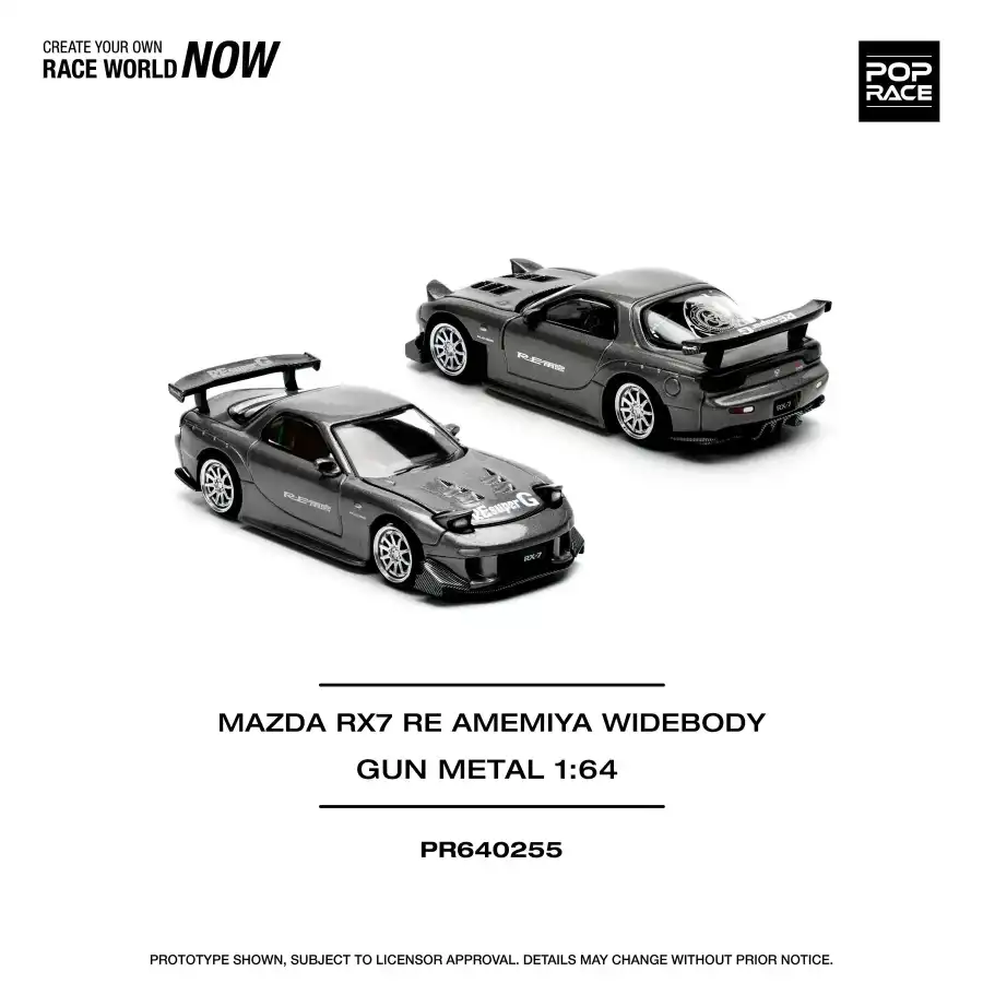 The Pop Race Mazda RX-7 PR64-255 is a detailed 1:64 scale diecast model of the legendary Japanese sports car.