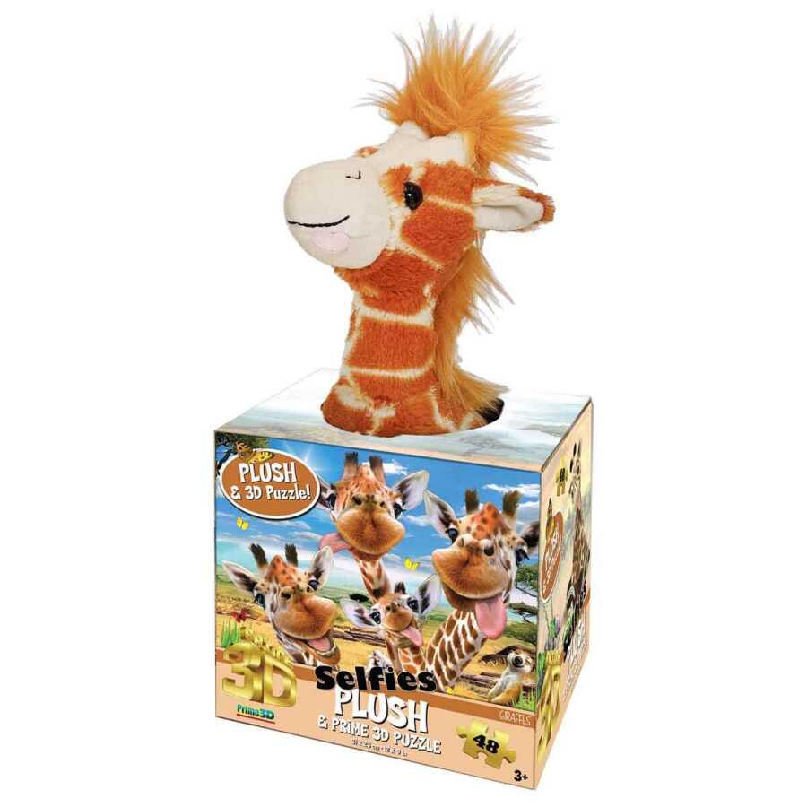 The 48-piece puzzle comes with a giraffe plush toy.