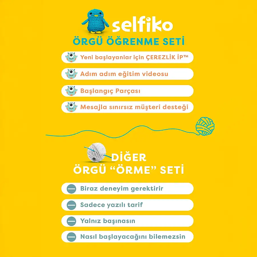 Selfiko Pengu Örgü Öğrenme Seti