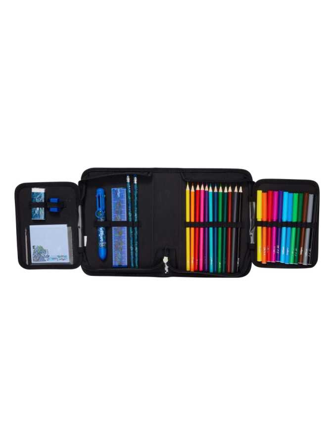Includes over 35 stationery items including coloured pencils, gel pens and pens that can be stored with a zip in a handy travel pencil case! Pencil Case, Pens and Notepad Features: 1 x Zippered Pencil Case, 12 x Coloured Pencils, 12 x Coloured Pencils, 6 x Coloured Gel Pens, 1 x Rainbow Pencil, 1 x Eraser, 1 x 15 cm Ruler, 1 x Pencil Sharpener, 2 x Grey Pencils, 2 x Highlighters, 1 x Adhesive Notebook, Length 14cm x Width 6cm x Height 22cm, Washing/Care Instructions: Do not put in the washing machine, can be wiped with a damp cloth.