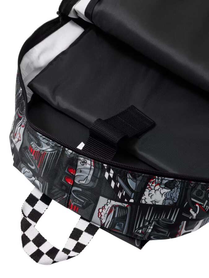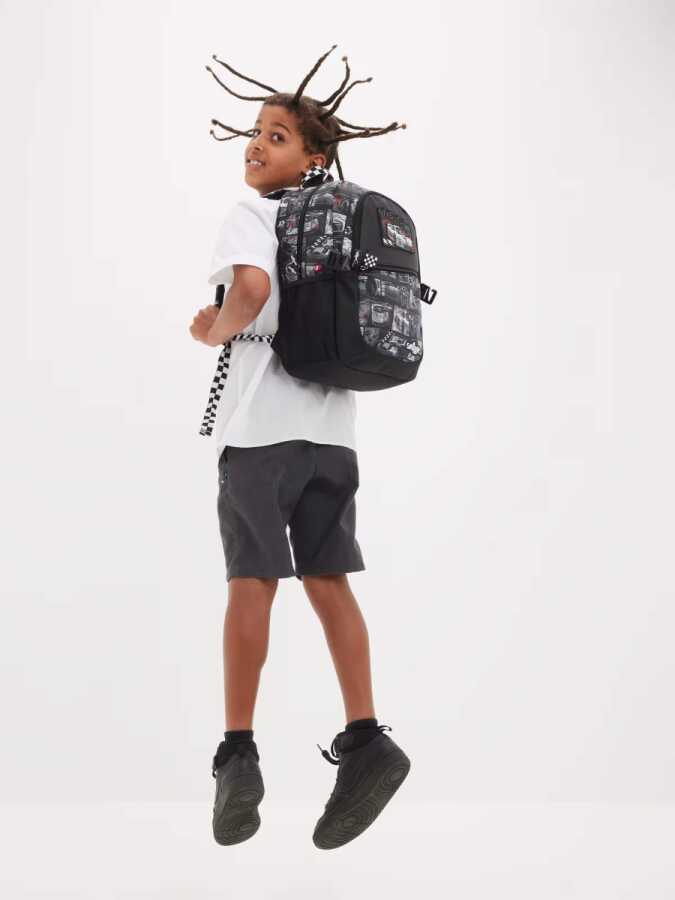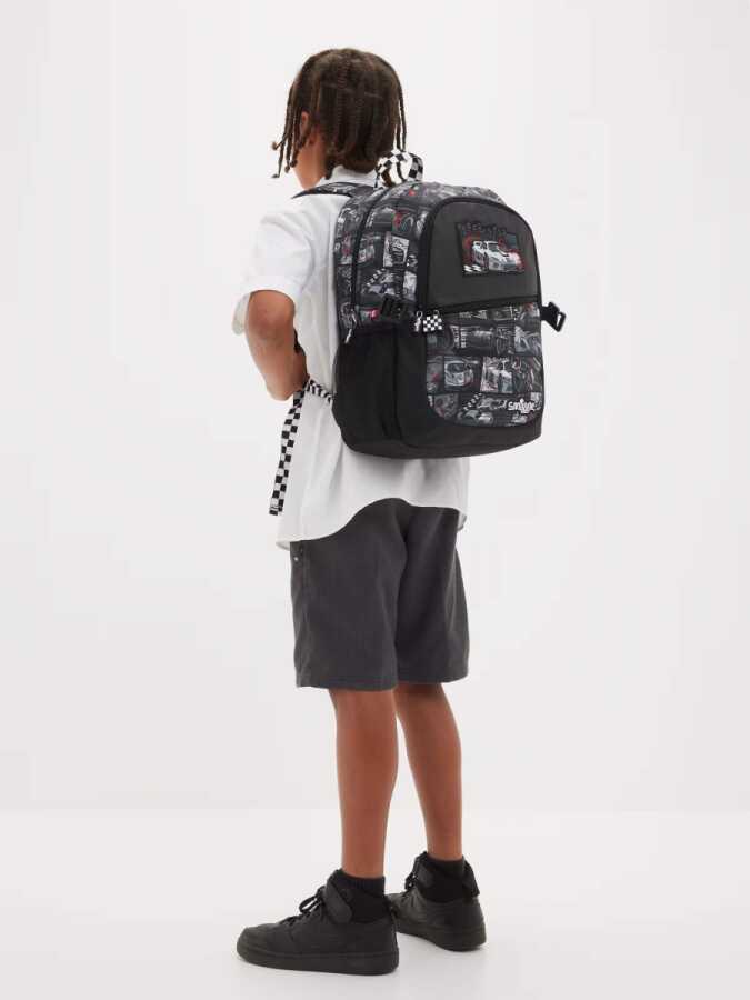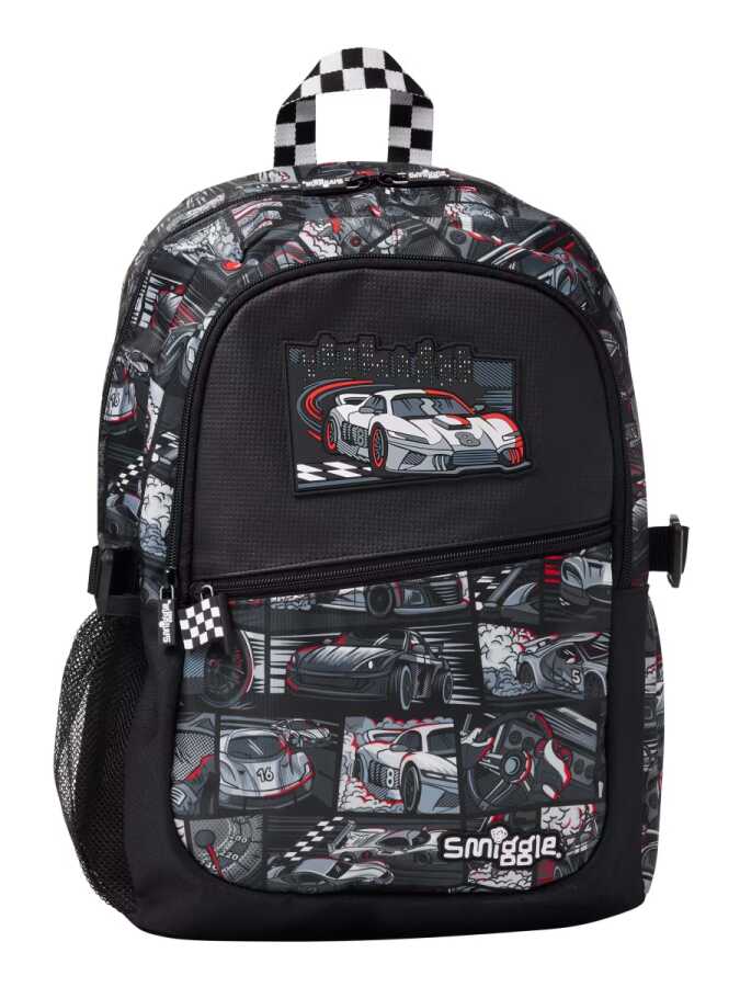 Check out extra design details like character zips, a silicone badge and graphic print! Backpack & School Bag Features Attach the lunchbox and attach the backpackThree zipped compartments - double zipped main compartmentDouble water bottle sleevePadded adjustable shoulder strapsCarrying Handle15" laptop compartmentInternal name tagW 30cm x H 42cm x D 13cmApprox.