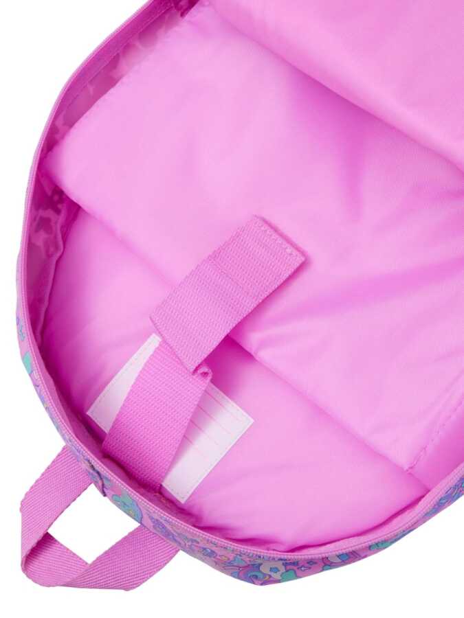 3 zippered compartments (including double zippered main compartment) 15 inch laptop compartment Dual hydration pack pockets Adjustable and padded shoulder straps Carrying handle Connection clips compatible with Trailblazer square lunch bag Character zipper ends, silicone badge and unicorn print details Internal name label Dimensions: W 30cm x H 42cm x D 13cm Volume: Approx.