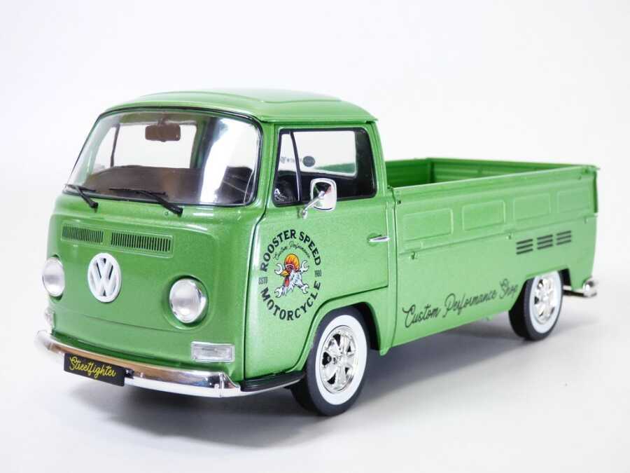 The Solido 1:18 Volkswagen T2 Pick-Up Solido Works Green 1968 S1809401 is a detailed diecast replica of the classic VW T2.