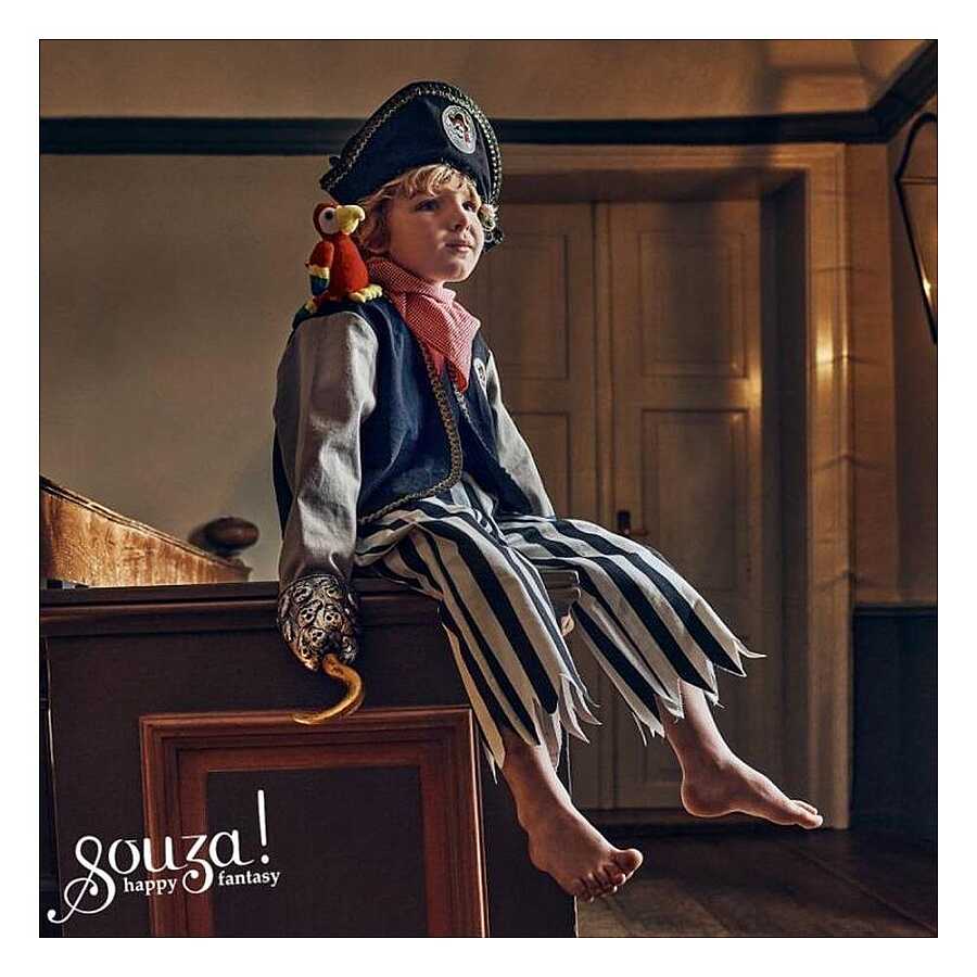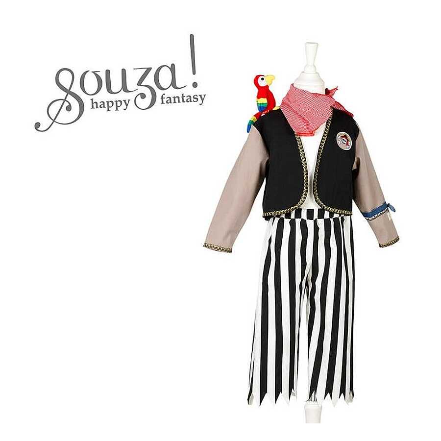 Get ready to embark on the most exciting adventures with the Souza for Kids pirate costume! This colorful costume, named Duncan, is specially designed for children aged 8-10 and 128-140 cm tall. The costume set includes a vest, pants, bandana, and a plush parrot that can be worn on the shoulder.