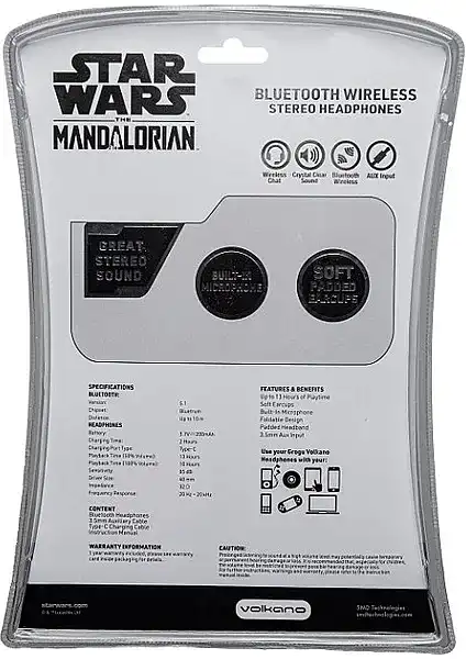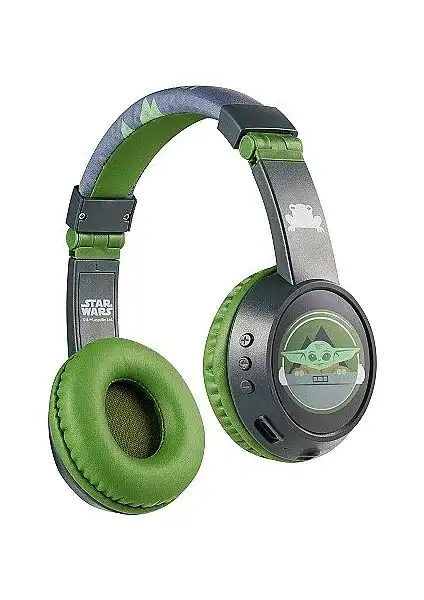 Star Wars Mandalorian Bluetooth Headset with Microphone Wireless Kids' Headphones Licensed SW-9938-GR Bluetooth wireless headphones / wireless headphones with Bluetooth connection Wireless calling with microphone, Wireless chat 12 hours playtime True stereo sound Crystal Clear Sound - smooth music listening quality Aux input / Aux cable Built-in rechargeable Lithium-ion Battery Micro USB charging cable User manual Over-ear headphones for children Size is specially designed for children, there is a maximum volume limit · Ergonomic, adjustable headband suitable for your growing child The ergonomic headband is fully adjustable and comfortably fits every child's head and can be used comfortably by your growing child.
