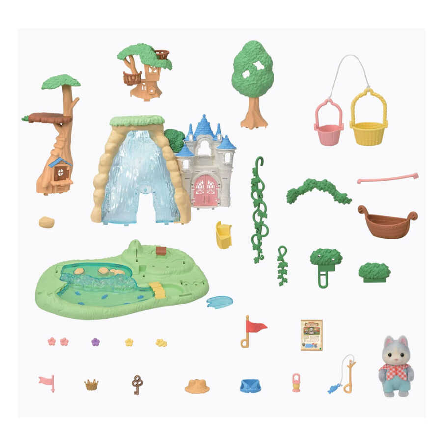 This playset includes Linnea, a Husky puppy, adventure gear and the Secret Forest, complete with all sorts of fun features! The Secret Forest is packed with exciting and thrilling things to see and do: a big waterfall for rafting, a castle with hidden treasure, a treehouse, an adventure boat and more! Embark on an adventure in search of the treasure in the Secret Forest! Includes Linnea, a Husky puppy dressed for adventure! She's ready to go with her life jacket, flashlight, flag, fishing rod, explorer hat and more! First she needs to find the key to the treasure chest! There's so much to search for: a bucket elevator, a vine cable car, a treehouse, a big waterfall with a cave behind it, a small secret path, a lifting bridge and more! Turn the castle floor and the treasure chest will appear! Open it with the key and take out the treasure inside!