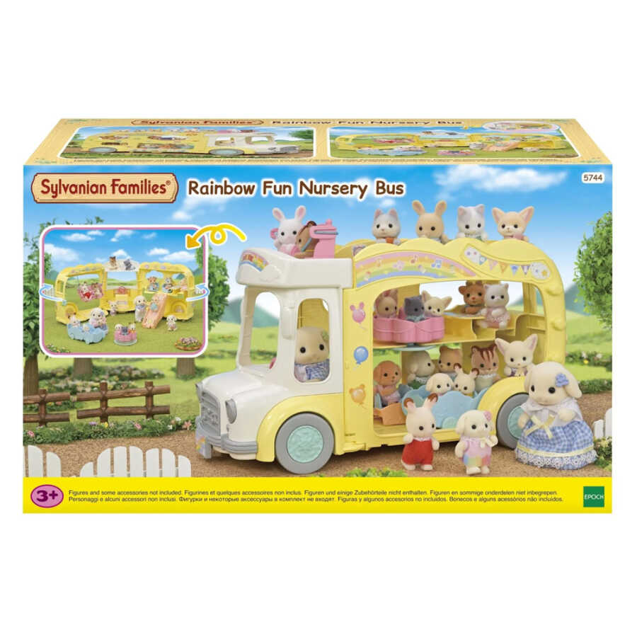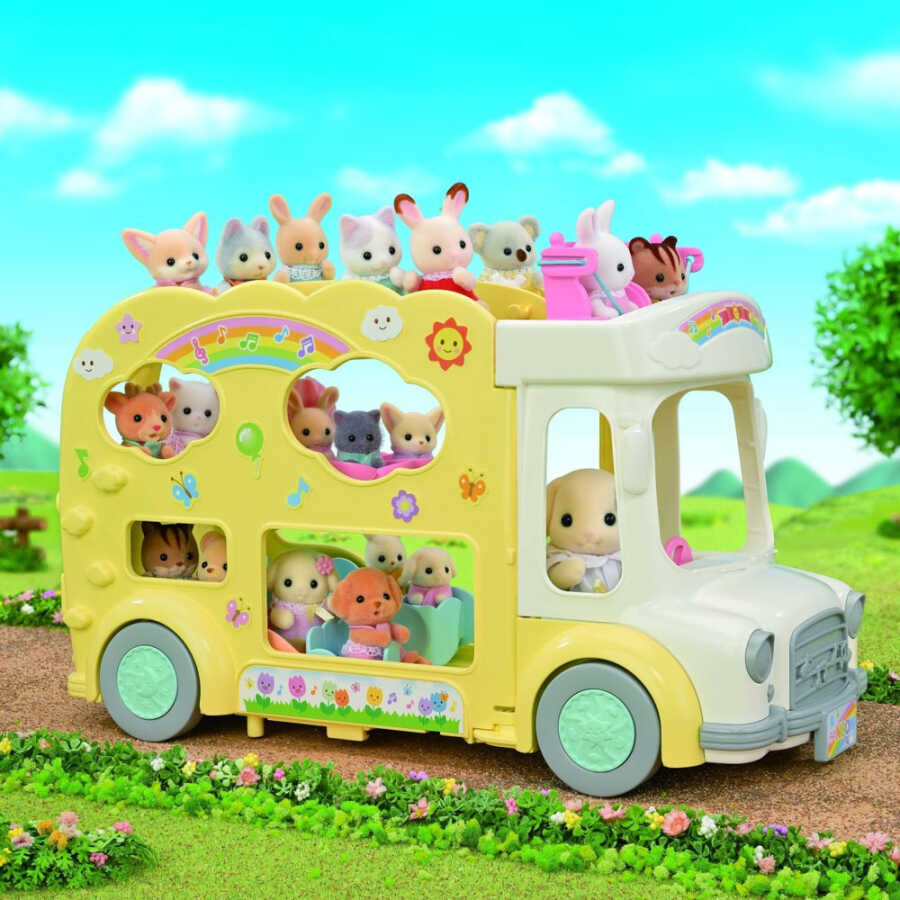 Get ready for the cutest journeys in the world of Sylvanian Families! The Rainbow Kindergarten Bus takes little figures on a delightful school trip.