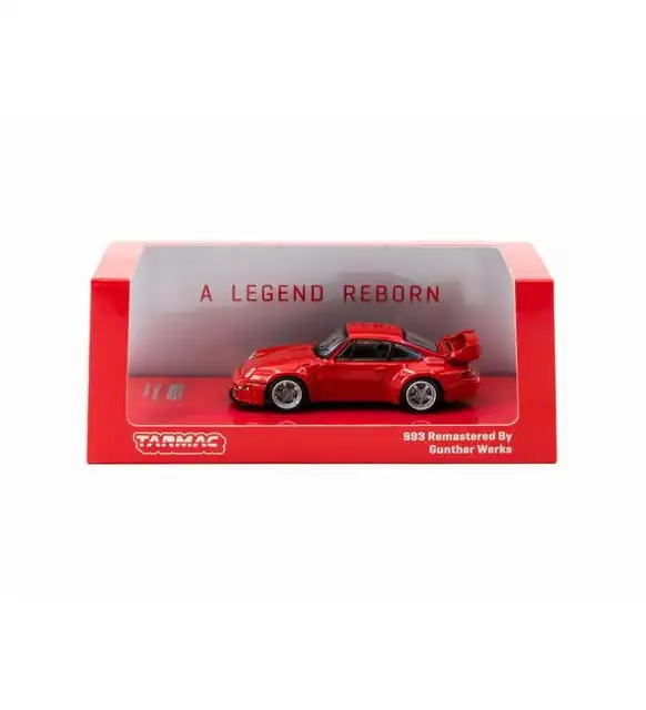 Tarmac Works 1/64 993 Remastered By Gunther Werks (model code T64R-TL054-RE) is a premium diecast model presenting Porsche's classic 993-body 911 with a modern reinterpretation. With the remastered design by Gunther Werks, the sporty details of the real car come to life at scale. This model, part of Tarmac Works ROAD64 series, aims for collection standards with high-quality metal body, clear logo prints, and detailed wheel-tire combination.