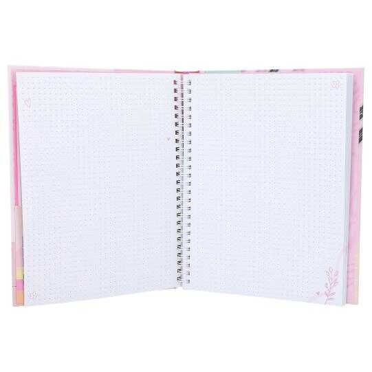 Contents: Ring binder (45 pages), stickers, a template, 1 pencil (HB), 2 double felt-tip pens with a brush tip and a fine tip (pink/black), 1 magic handwriting marker with a special tip (black) as well as great ideas and suggestions for how to design a diary.