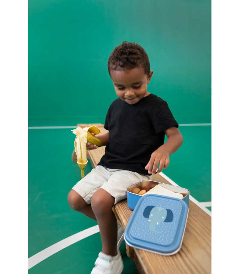 The large lunch box has a fixed compartment, leaving room for a small snack.