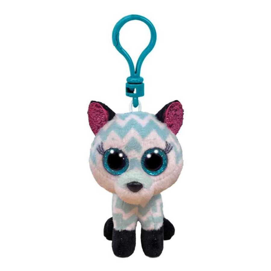 The Ty Atlas - Fox Aqua Chevron Clip 150079TY35249 is a cute fox plush keychain that stands out with its stylish aqua color and zigzag chevron pattern.