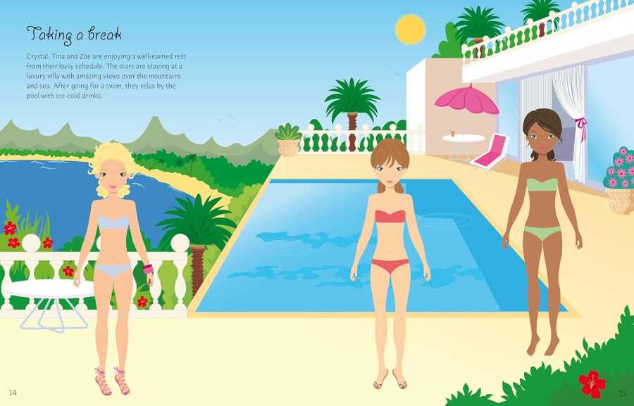 Discover the magical world of Sticker Dolly Dressing! The dolls love touring the world with their girl band. Use the stickers to get them ready for a dance rehearsal, a day in the recording studio, a big performance and a world tour full of jet travel. Packed with sticker pages containing over 400 stylish dresses, cool costumes, instruments, microphones and more.