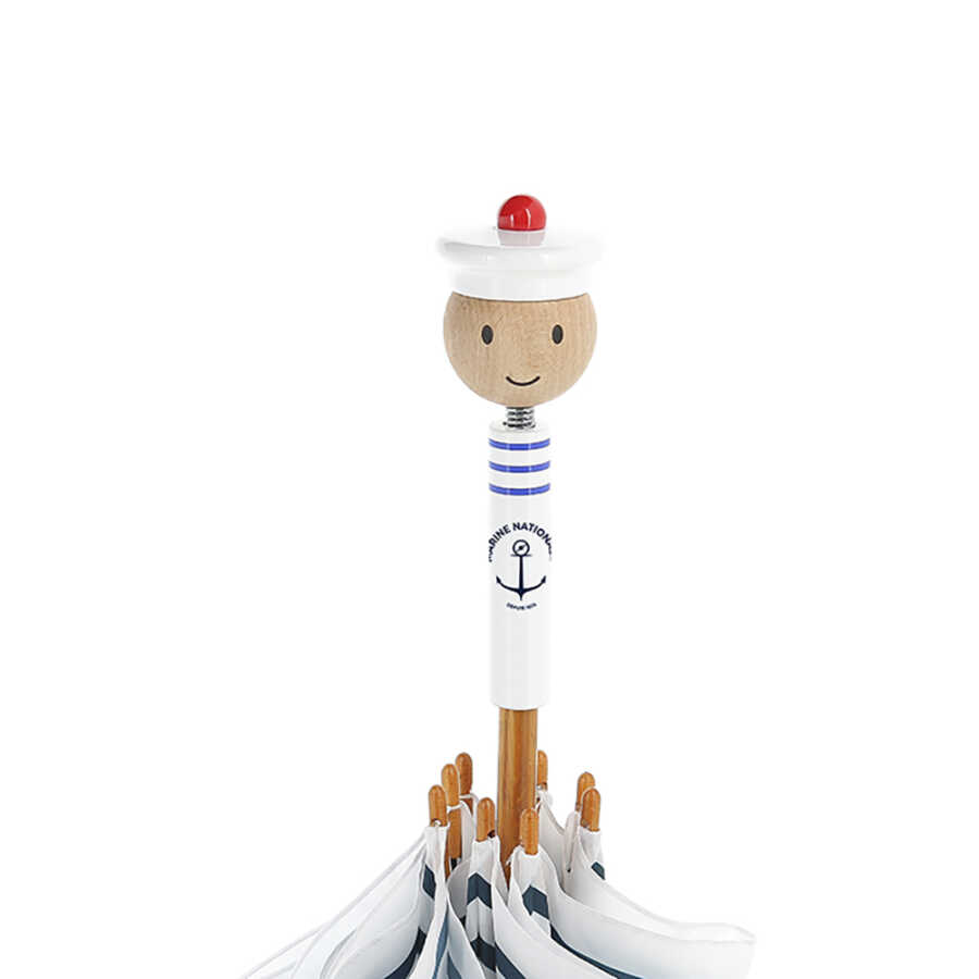 Sağlam karbon iskeletli ve küçük parmakların sıkışmasını önleyen özel açma-kapama sistemine sahip denizci şemsiyesi.