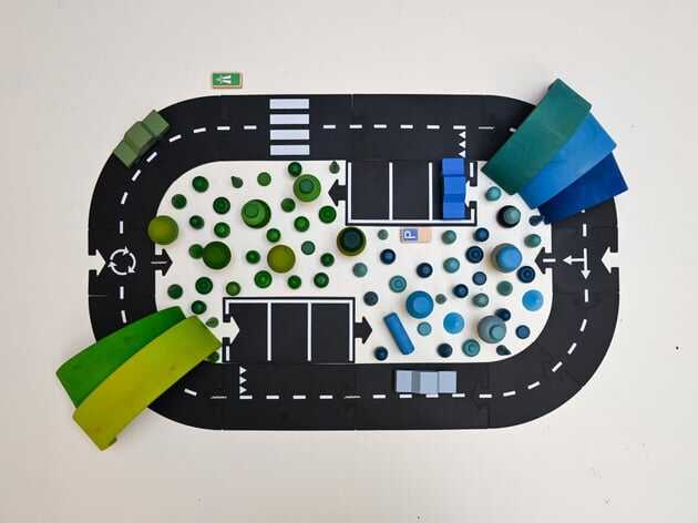 Waytoplay 16-piece road Expressway sparks creativity! The original flexible toy road features straights, curves, and intersections.