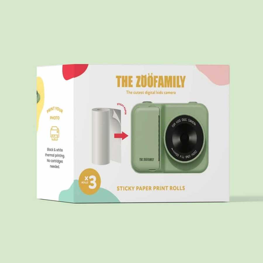 The Zoo Family 3-Pack Sticker Paper Roll Set is compatible with Zoofamily Instant Print camera models (Unicorn, Dino, Fox, Bear).