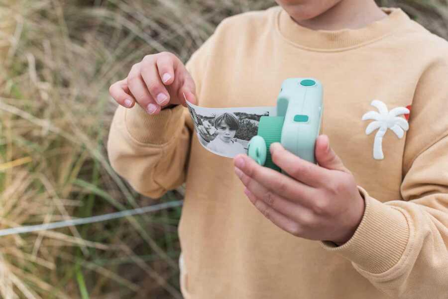 With these rolls, kids can not only instantly print their photos in black and white, but also easily attach these special adhesive-backed papers to their notebooks, walls, albums, or projects.
