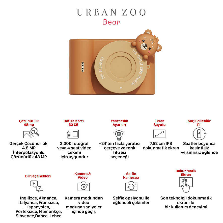 Think your child isn't interested in cameras? Introduce them to the magic of photography! The Zoo Family Bear Instant Print Kids Camera, with its cute design and practical features, makes taking photos a fun experience for kids.