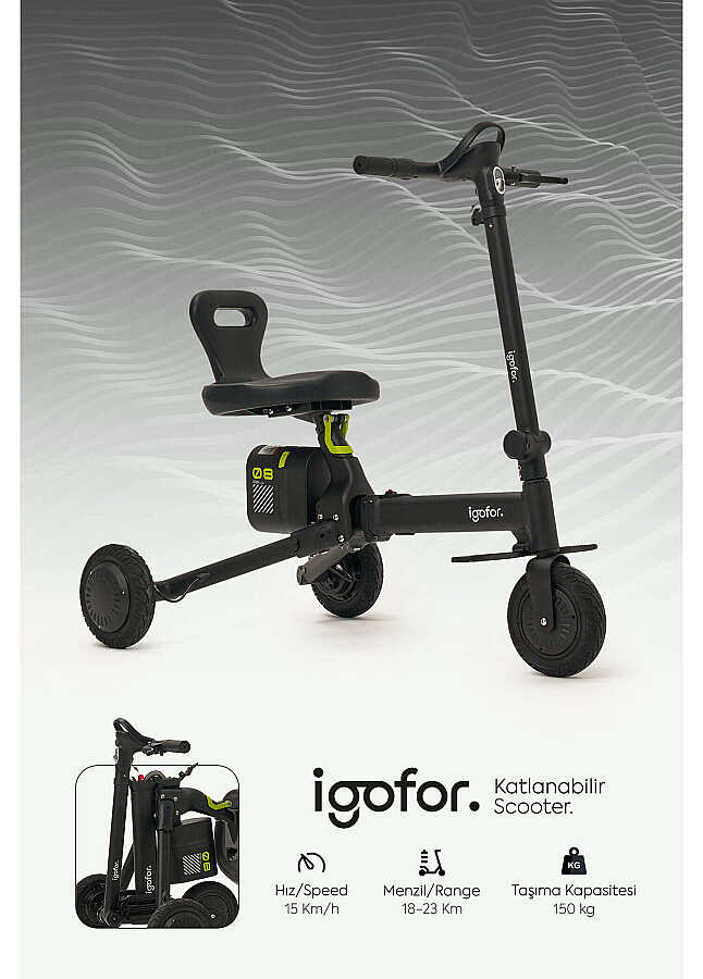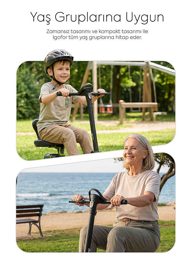 Kullanışlı Donanımlar: Ayarlanabilir oturma yüksekliği, ileri/geri sürüş modu, LED ekran, Type-C şarj girişi