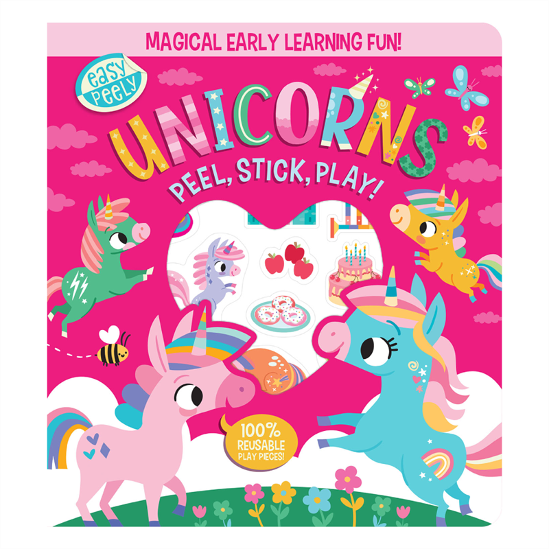 Kolay Soyulan oyun parçalarıyla soyup yapıştırmaya ve oynamaya hazır olun. Her resmi tamamlamak için doğru oyun parçalarını arayın ve bulun ve tek boynuzlu atların renkler, sayma, şekiller ve duygular hakkında her şeyi öğrenmelerine yardımcı olun.